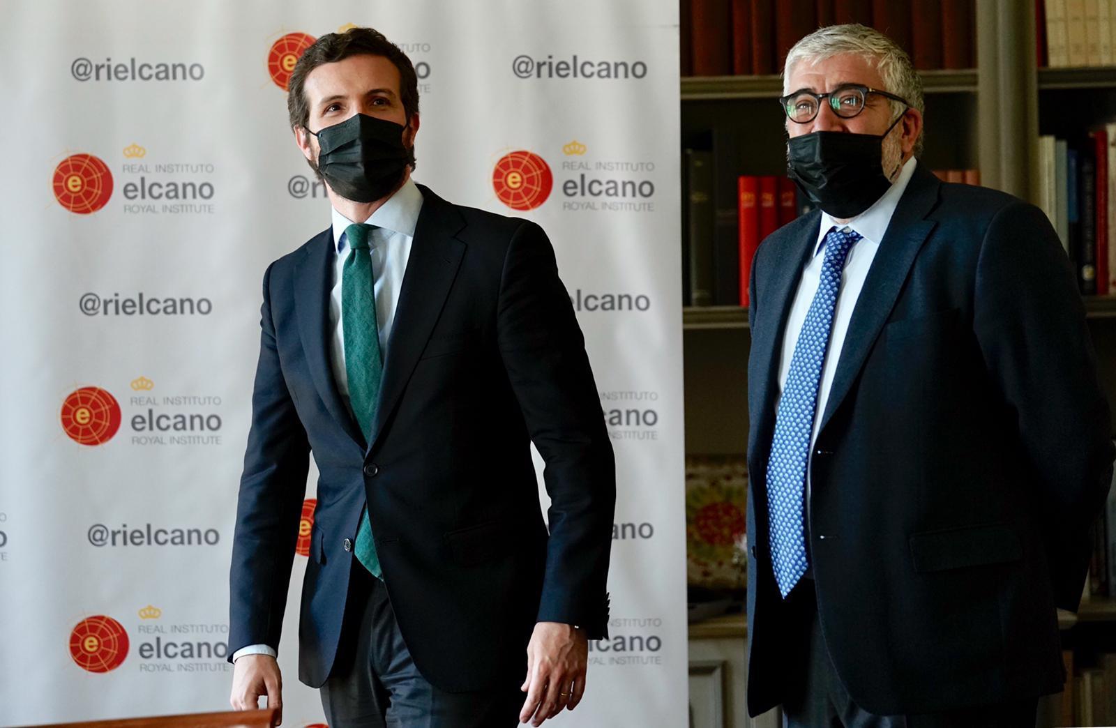 Durante el encuentro, en el que han abordado los principales desafíos globales, Casado ha reconocido la labor del instituto en la promoción de la política exterior del Estado, su respaldo a la Corona y la representación internacional del Rey.