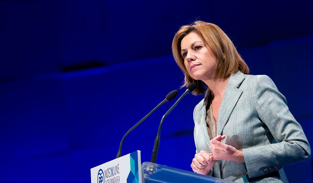 En este punto, Cospedal ha hecho un llamamiento a la sensatez de los dirigentes de la Generalitat de Cataluña. “Vamos a hacer todo lo posible para recuperar las instituciones de todos, para devolver la estabilidad y el sentido común a la gestión de los asuntos que de verdad importan; para llegar a acuerdos y dialogar, para hablar de sanidad, de empleo… Por nosotros no va a quedar”. “Ellos -ha lamentado- no quieren hablar de este tipo de cosas para que no se conozca la enorme incompetencia de su gestión”. “Han cedido la gobernabilidad y la estabilidad de Cataluña a un saco roto, a un delirante movimiento populista, antieuropeo, anticapitalista, antisistema, antitodo, que terminará siendo anti Sistema Solar”, ha ironizado.