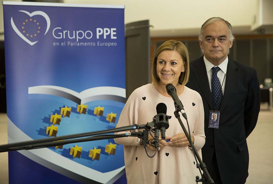 María Dolores Cospedal ha atendido a los medios de comunicación tras participar en la reunión del Grupo Parlamentario Popular en el Parlamento Europeo, a quienes ha transmitido que su formación política pretende “huir de enfrentamientos estériles, de frentismos, de separaciones y disgregaciones de la sociedad”. En definitiva, “queremos un país fuerte en una Europa fuerte”, ha enfatizado.