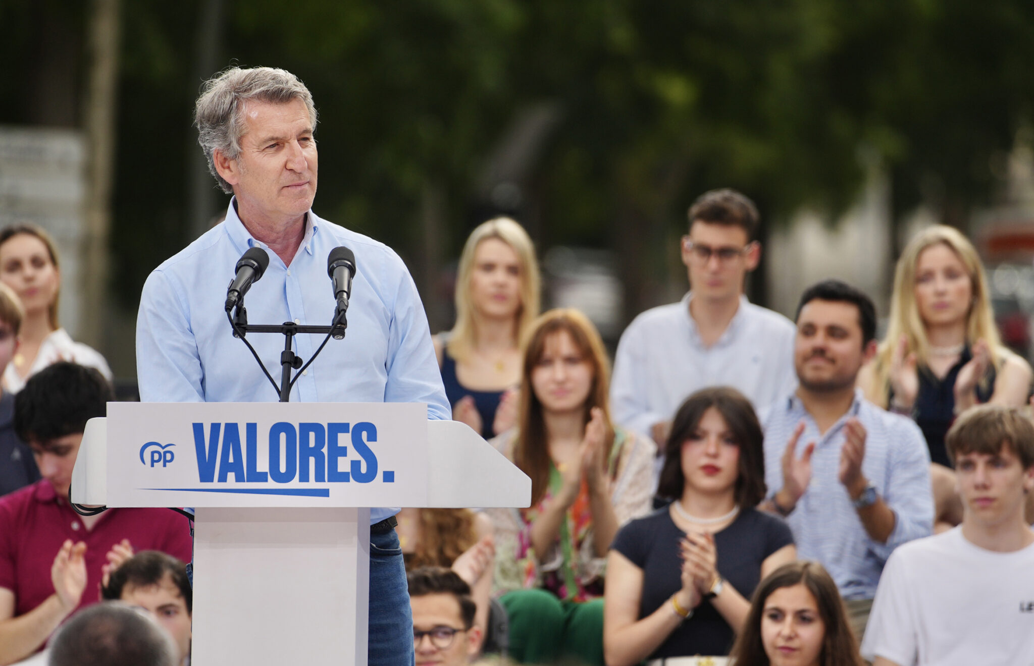 - Hace un llamamiento a la movilización cívica para acudir a la concentración del 8 de junio en Madrid: “España no es lo que estamos viendo y escuchando. Y por eso, no lo vamos a aguantar. No nos vamos a callar. Nos vamos a levantar”