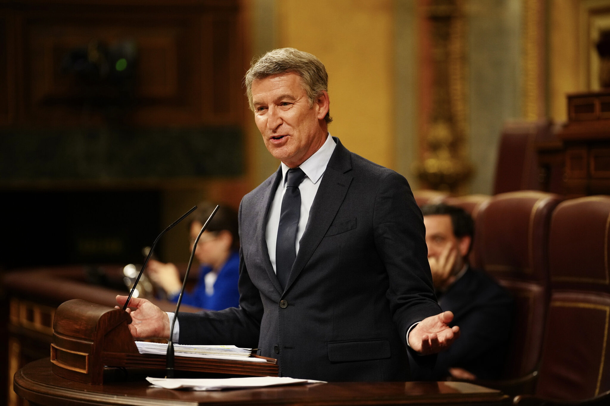 - El presidente del PP, Alberto Núñez Feijóo, considera que las más de tres horas de comparecencia del Pedro Sánchez en el Congreso se resumen en “apagones y sermones”, tras haber dedicado más tiempo a descalificarle, siguiendo el patrón de todas sus intervenciones, que a explicar el plan de Defensa a todos los españoles