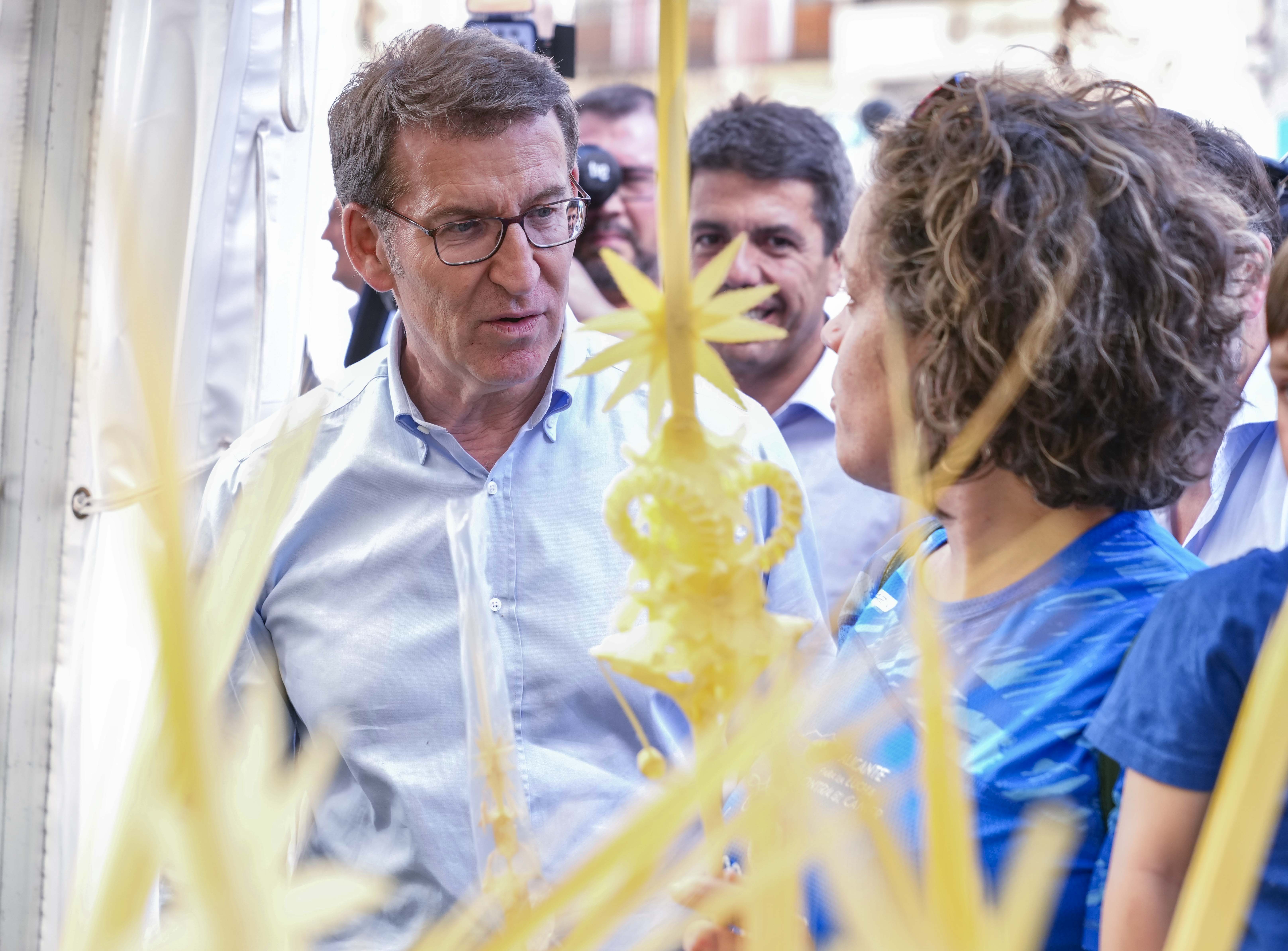 Alberto Núñez Feijóo y Carlos Mazón visitan el mercado de la Palma Blanca