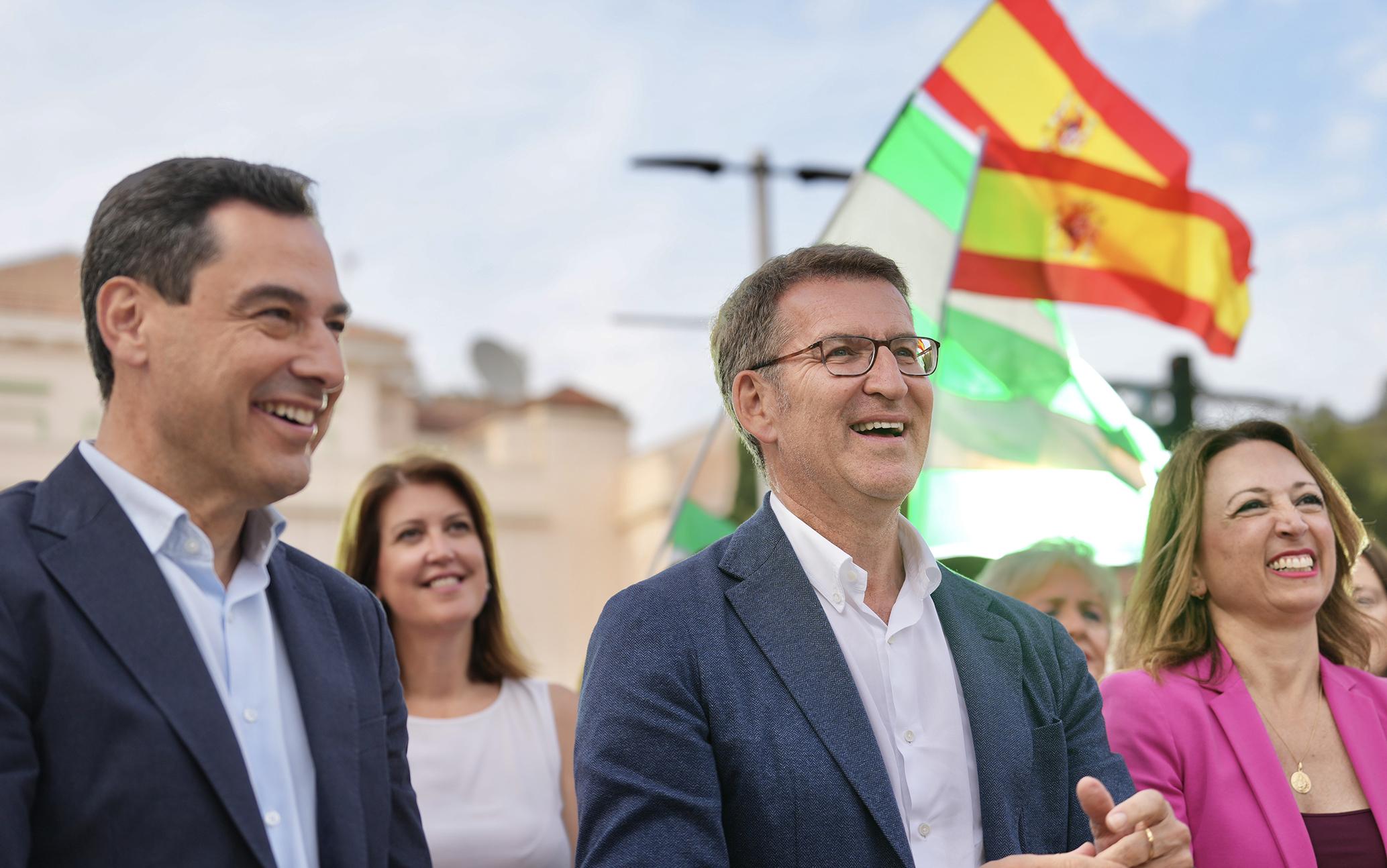 Alberto Núñez Feijóo y Juanma Moreno en un acto en Málaga