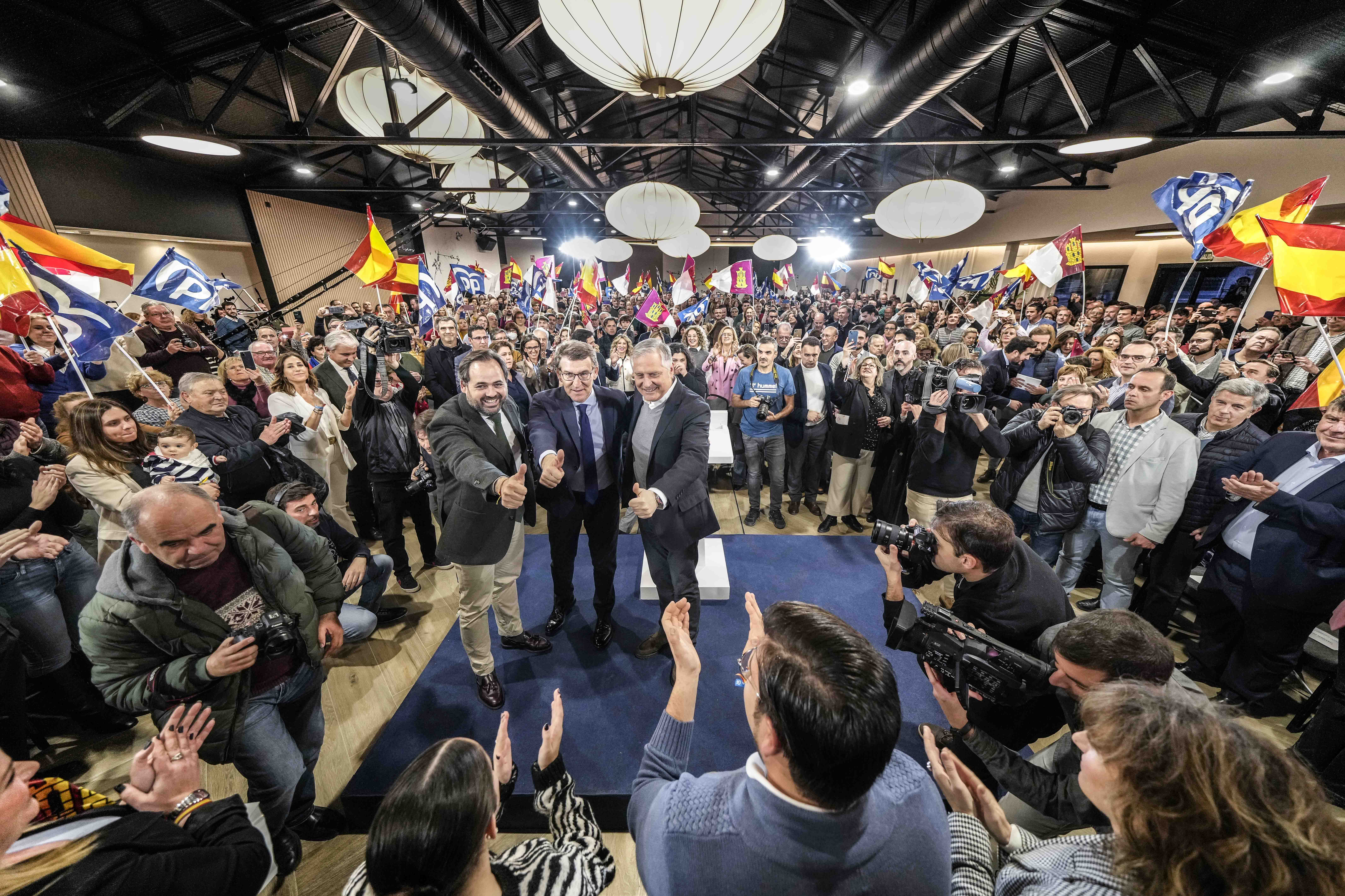 Alberto Núñez Feijóo interviene en un acto en Ciudad Real junto a Paco Núñez y Francisco Cañizares.