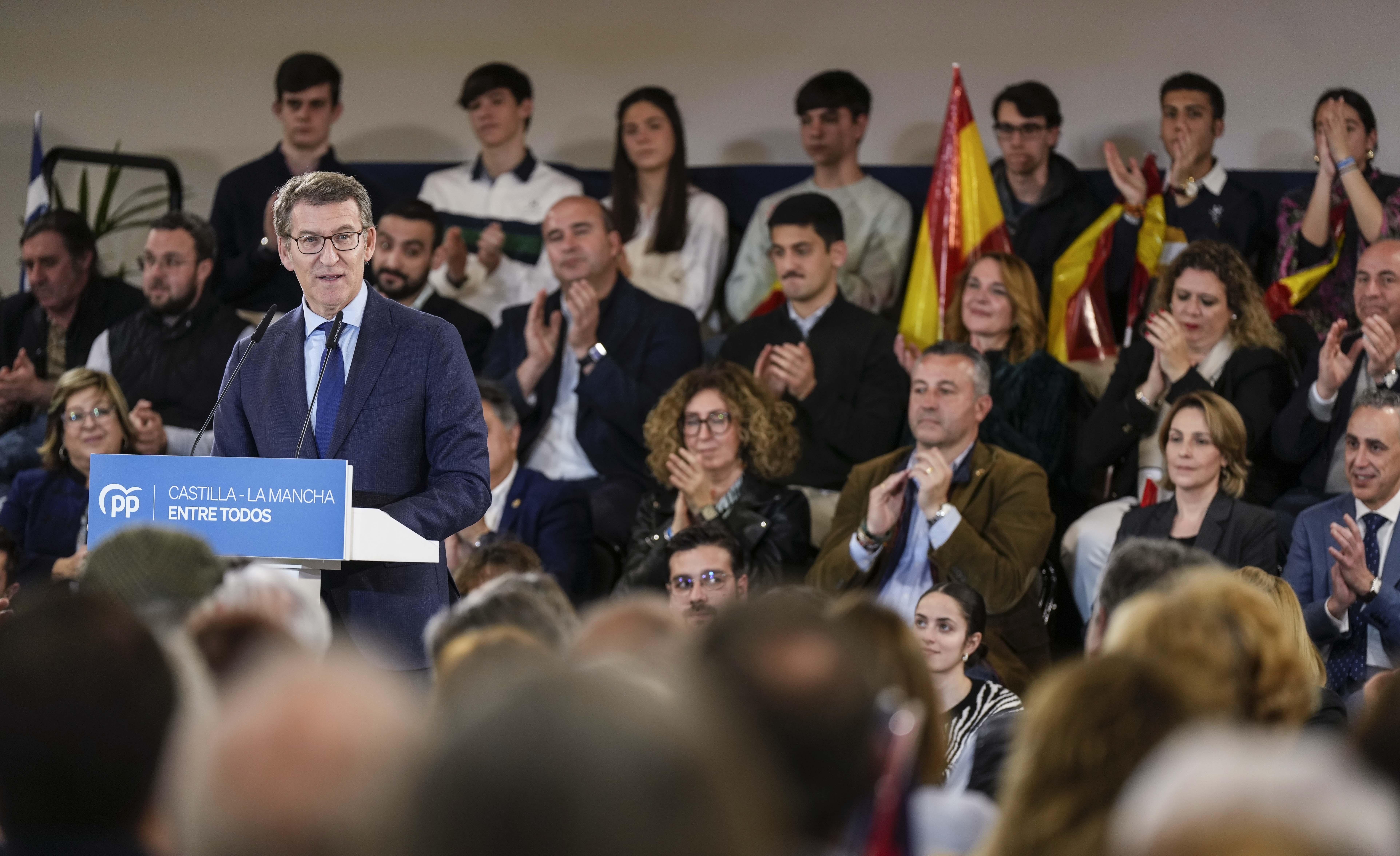 Alberto Núñez Feijóo interviene en un acto en Ciudad Real junto a Paco Núñez y Francisco Cañizares.