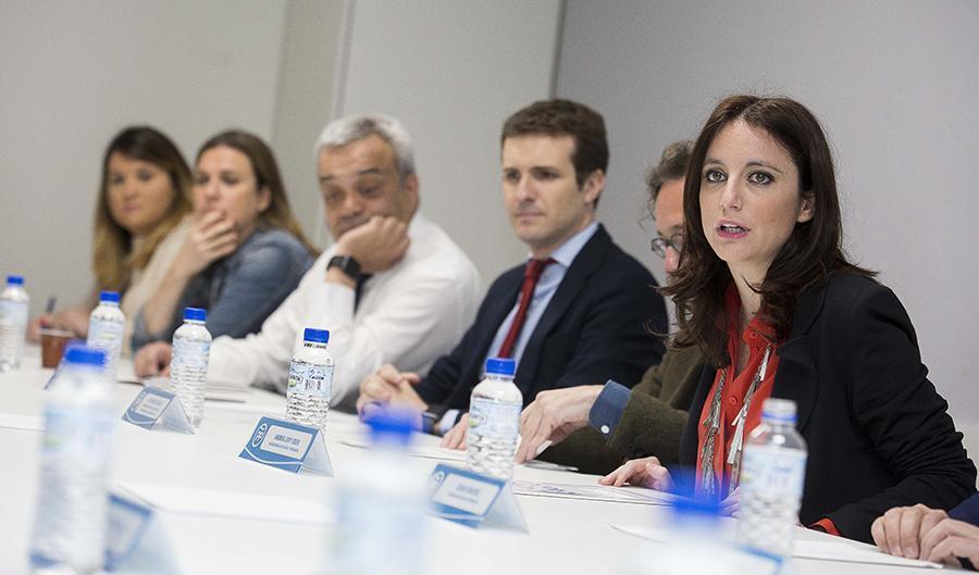 Andrea Levy y Pablo Casado se reúnen con los alumnos de la Escuela Manuel Fraga