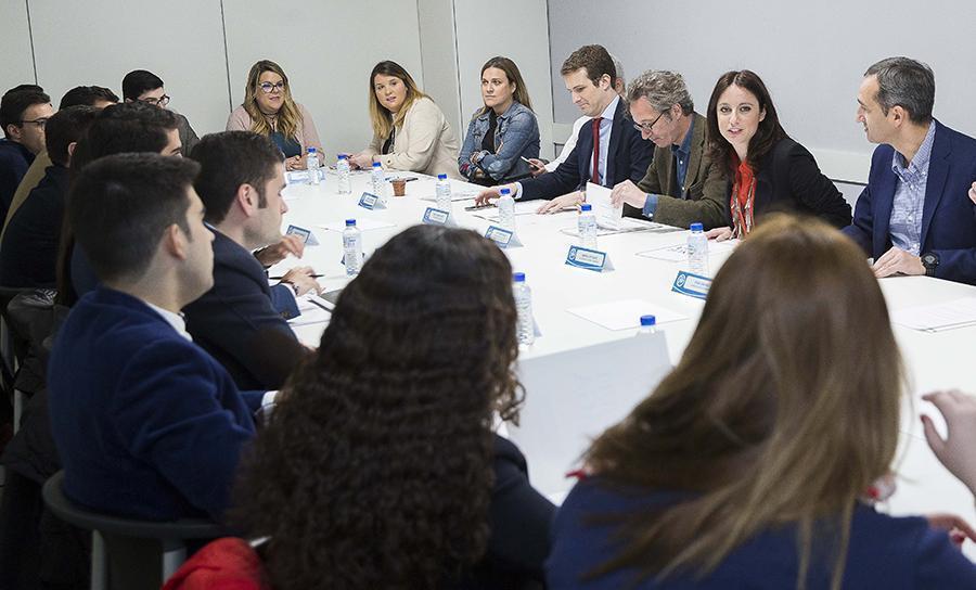 Andrea Levy y Pablo Casado se reúnen con los alumnos de la Escuela Manuel Fraga