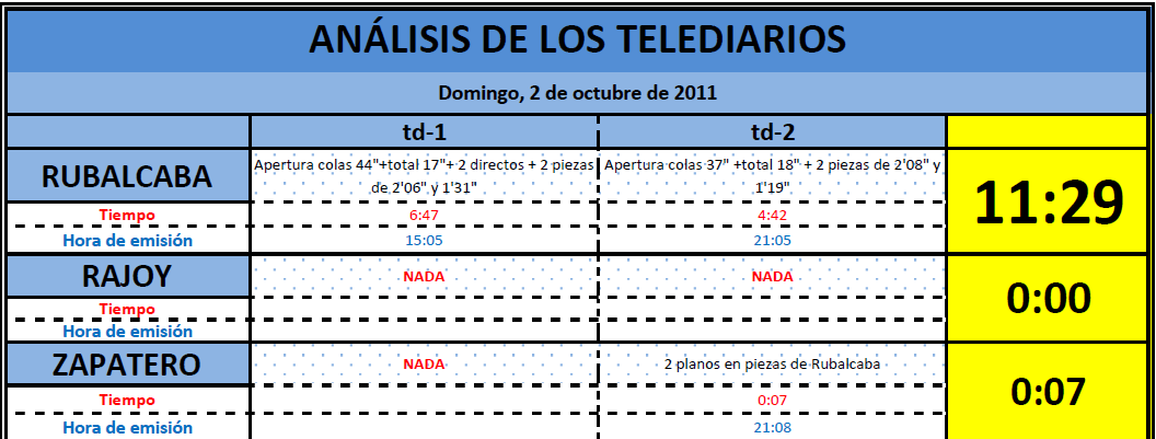 Cuadro de análisis de los telediarios de TVE