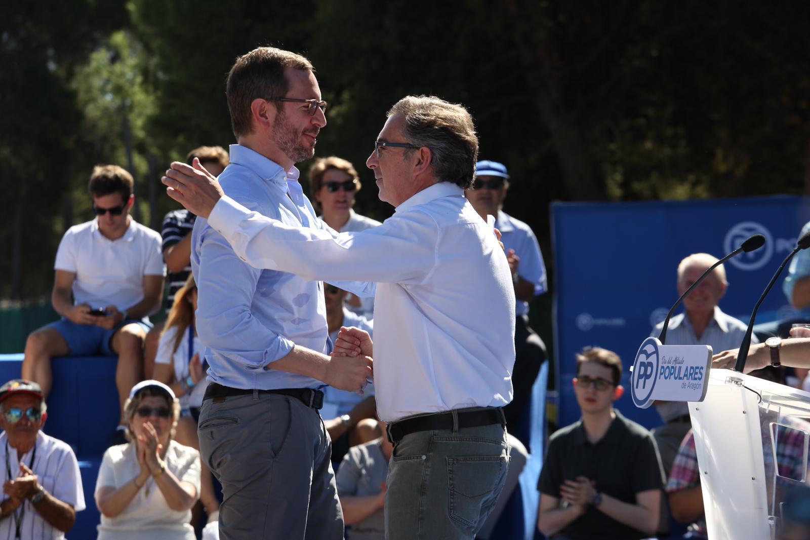 Javier Maroto y Luis María Beamonte se saludan en el Día del Afiliados del PP de Aragón