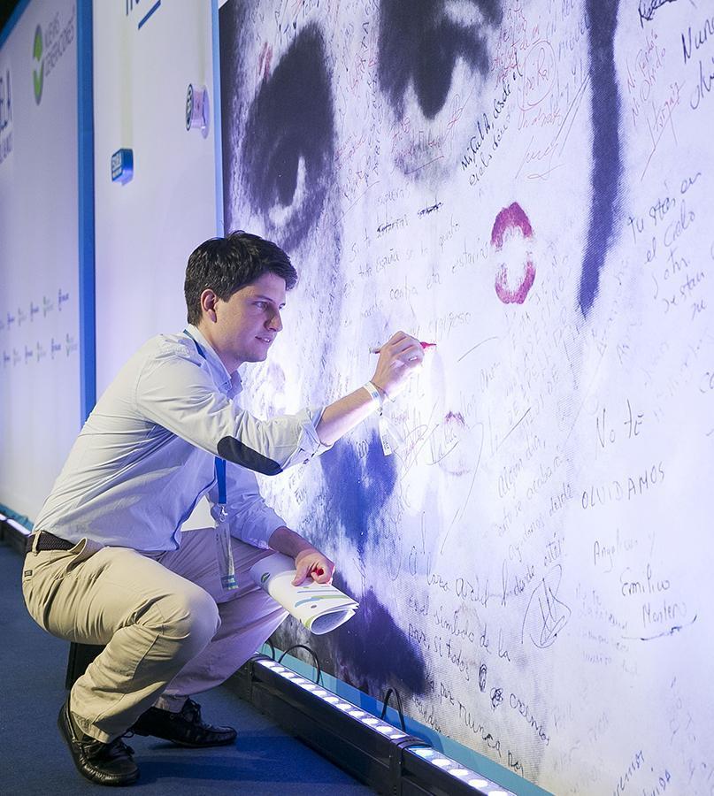 Diego Gago firma en el mural