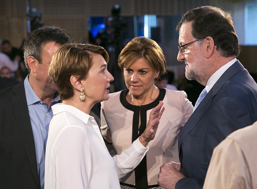 Marga Durán saluda a Mariano Rajoy y a María Dolores de Cospedal