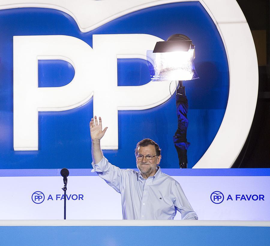 Mariano Rajoy saluda desde el balcón de Génova