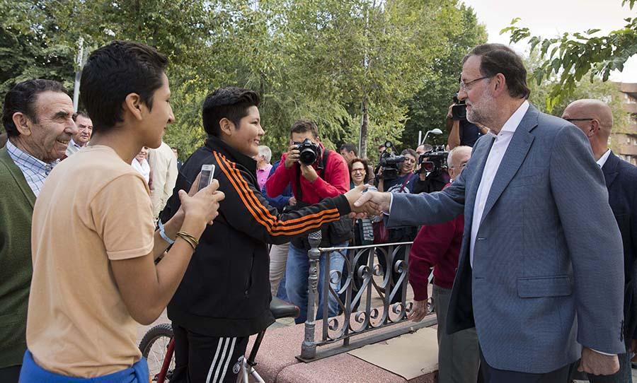 Mariano Rajoy saluda a unos jóvenes en Mora (Toledo)