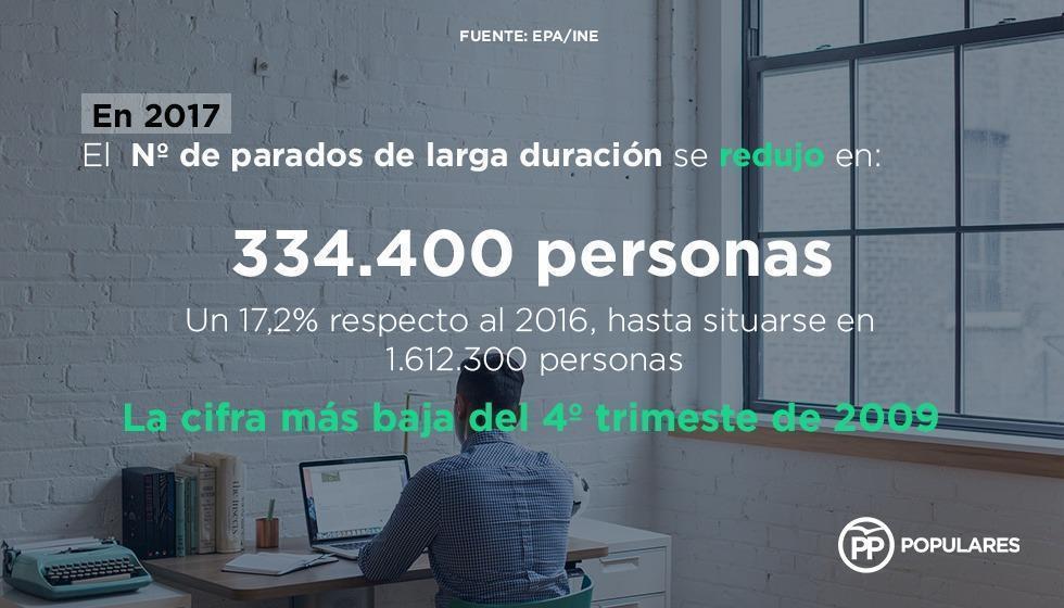 El número de parados de larga duración se redujo en 334.400 personas