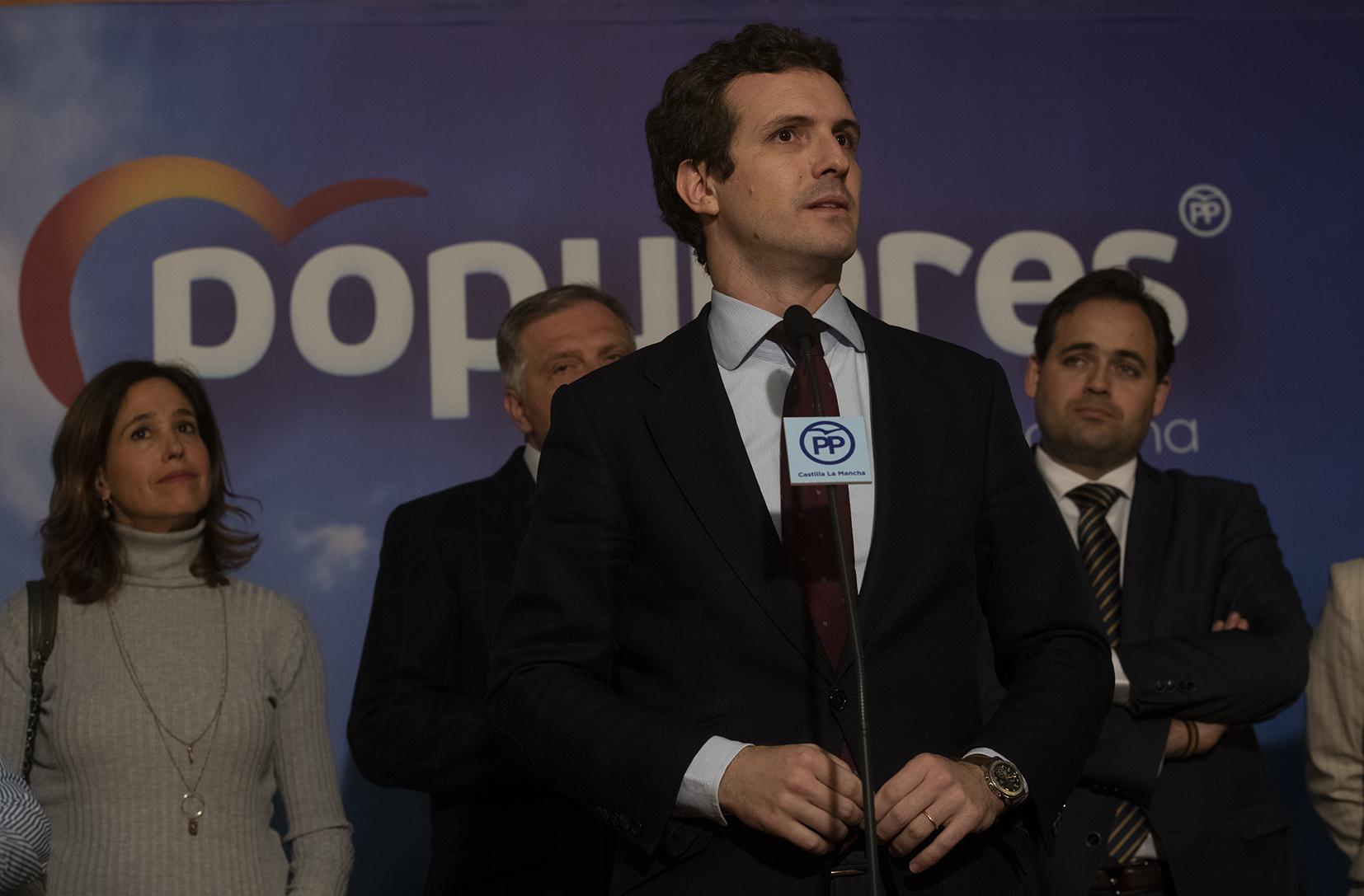 Pablo Casado atiende a los medios de comunicación en Ciudad Real