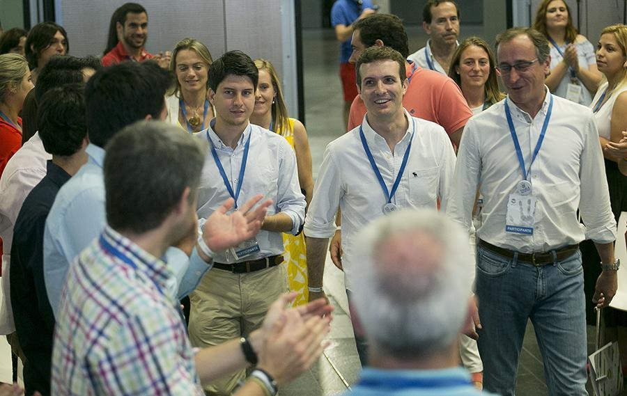 Pablo Casado con Diego Gago y Alfonso Alonso a su llegada
