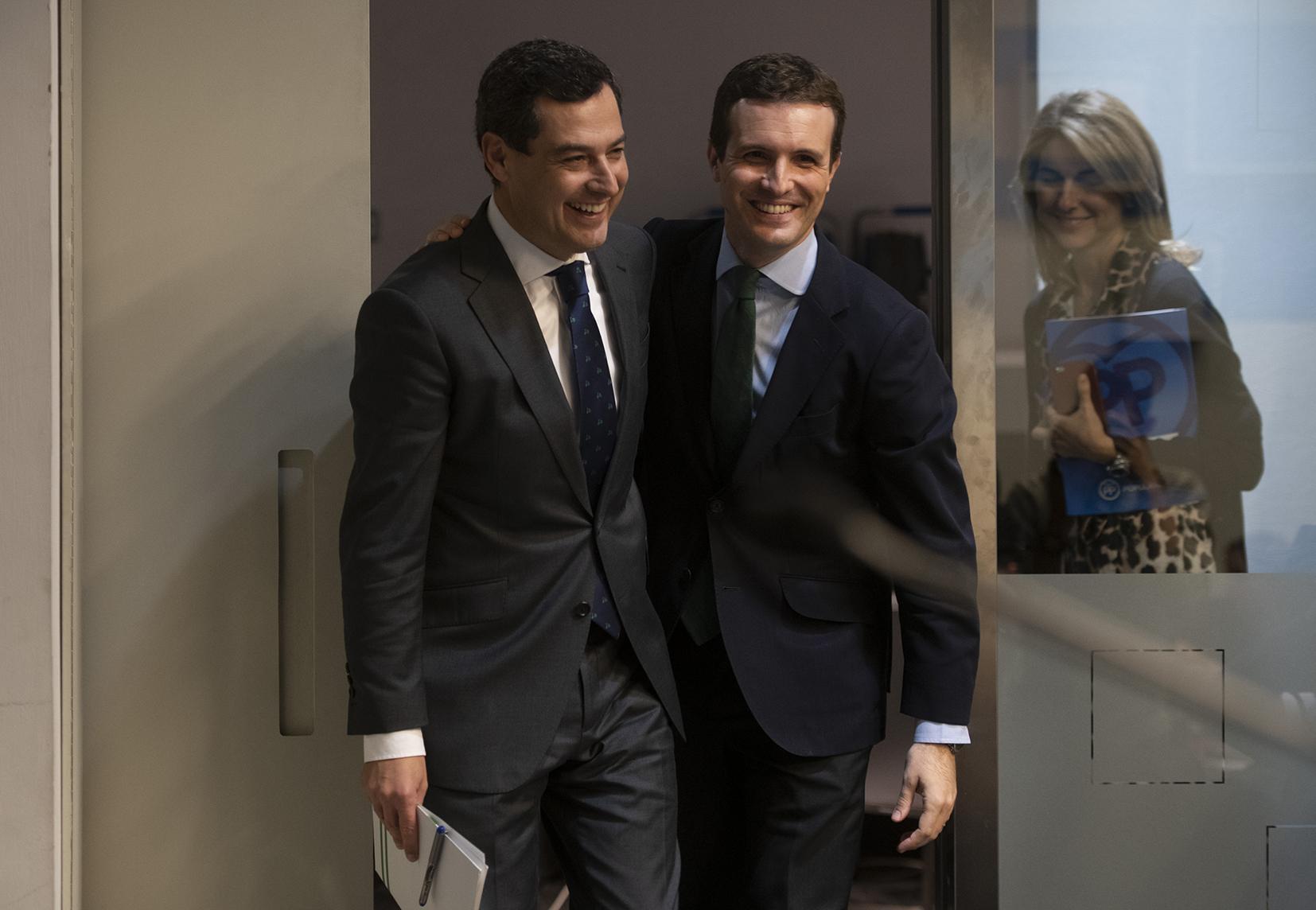 Pablo Casado y Juanma Moreno en rueda de prensa