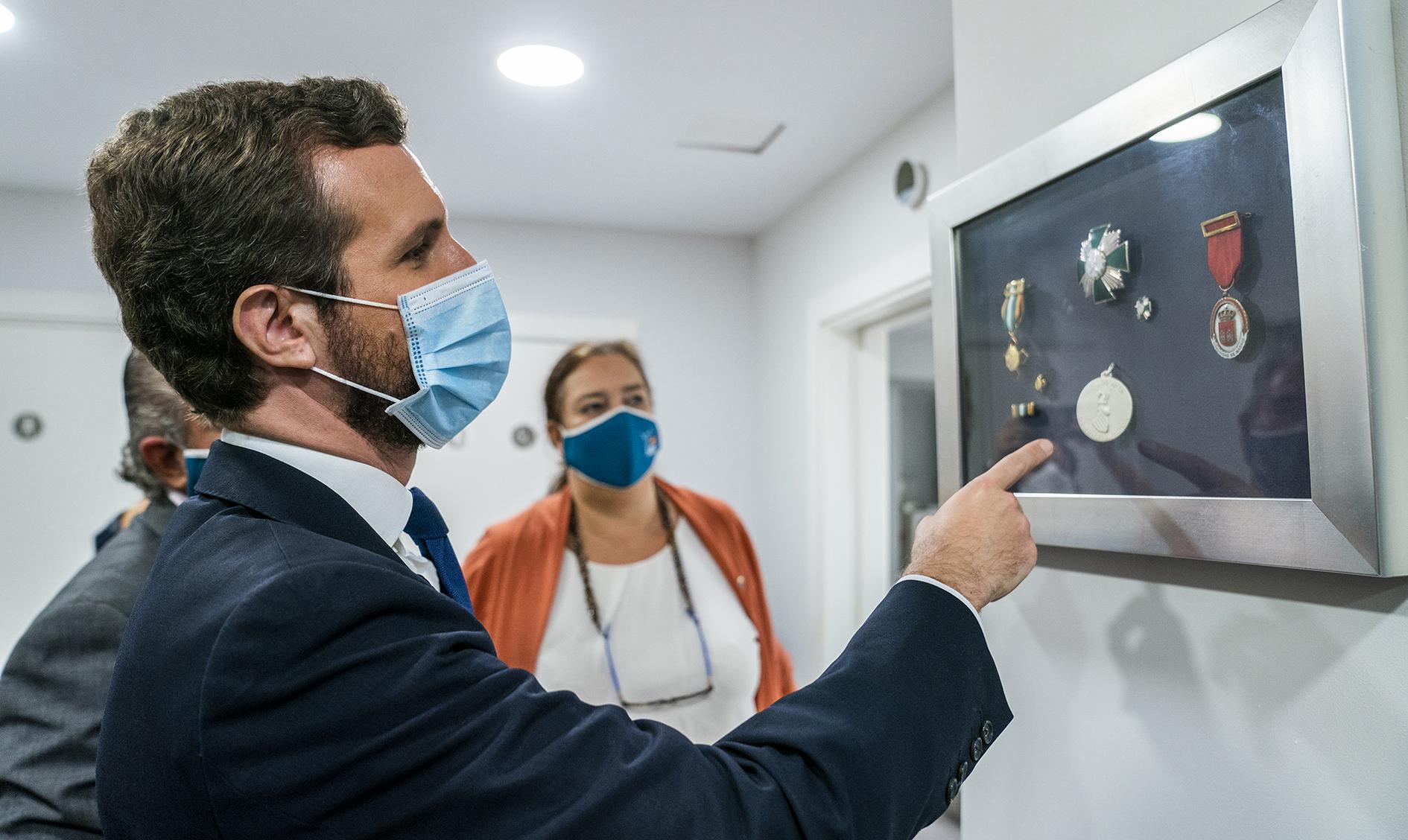 Pablo Casado junto a la presidenta de la AVT, Maite Araluce