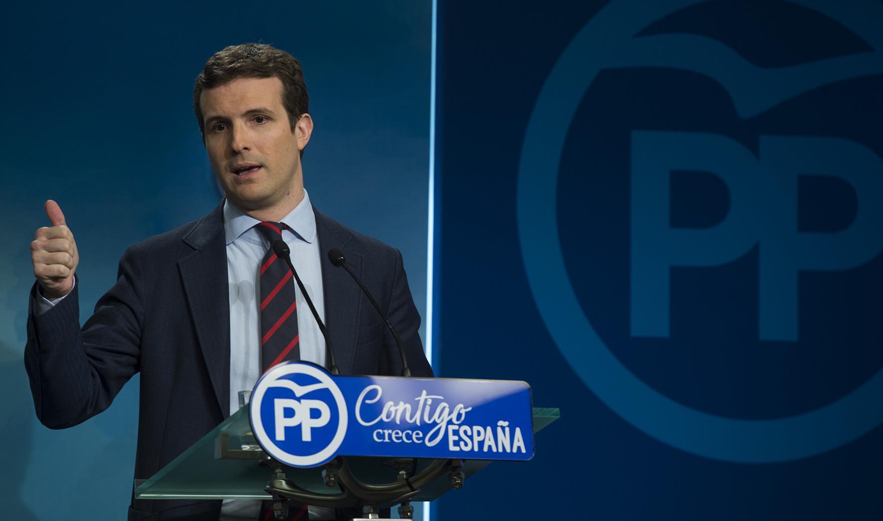 Pablo Casado, en rueda de prensa en la sede nacional del PP