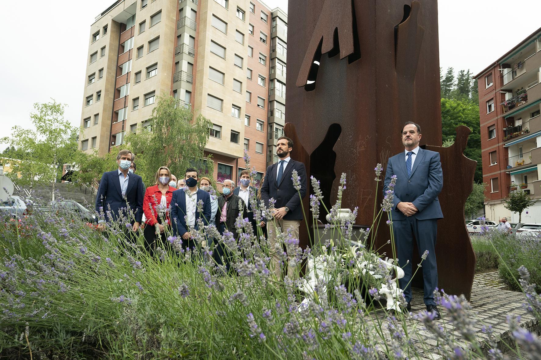 Pablo Casado y Carlos Iturgaiz participan en una ofrenda floral en recuerdo de Miguel Ángel Blanco