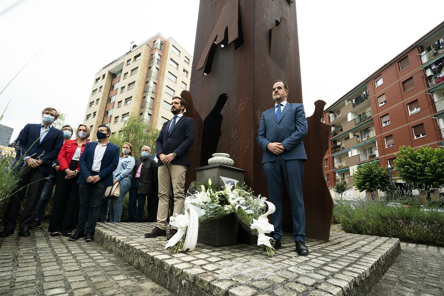 Pablo Casado y Carlos Iturgaiz participan en una ofrenda floral en recuerdo de Miguel Ángel Blanco