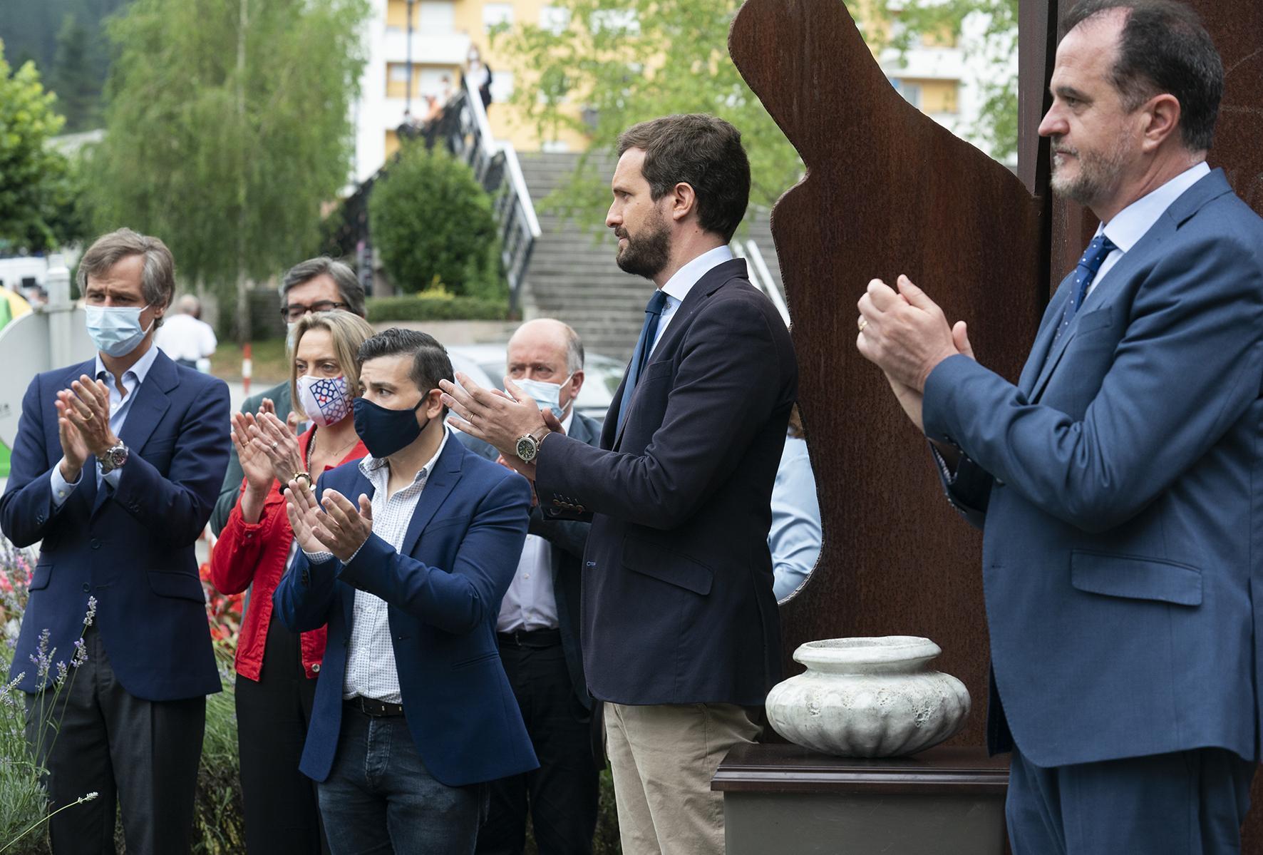 Pablo Casado y Carlos Iturgaiz participan en una ofrenda floral en recuerdo de Miguel Ángel Blanco