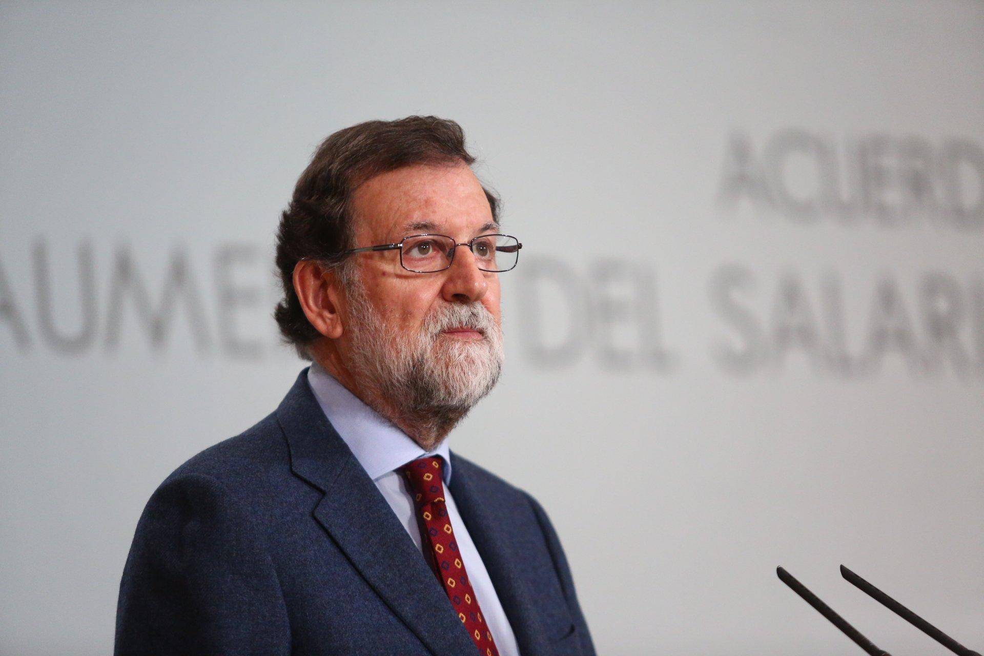 El presidente del Gobierno, Mariano Rajoy, hace unas declaraciones después de firmar el acuerdo para la subida del SMI
