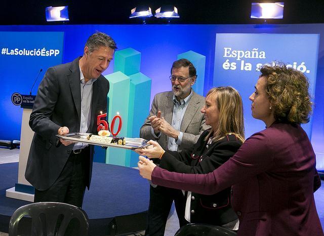 El presidente del Gobierno y del PP, Mariano Rajoy, junto a Albiol, Xandri y Montserrat en Lleida