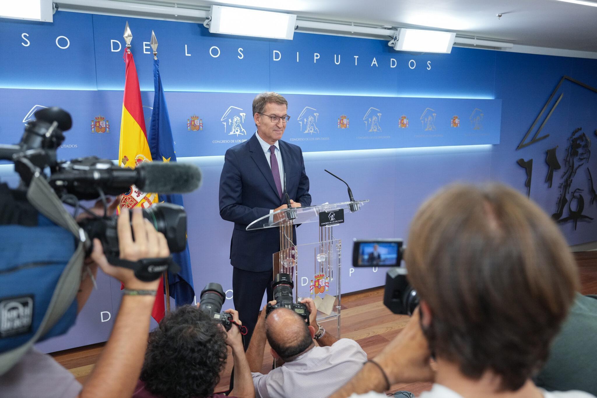 El presidente del Partido Popular, Alberto Núñez Feijóo, en declaraciones en el Congreso