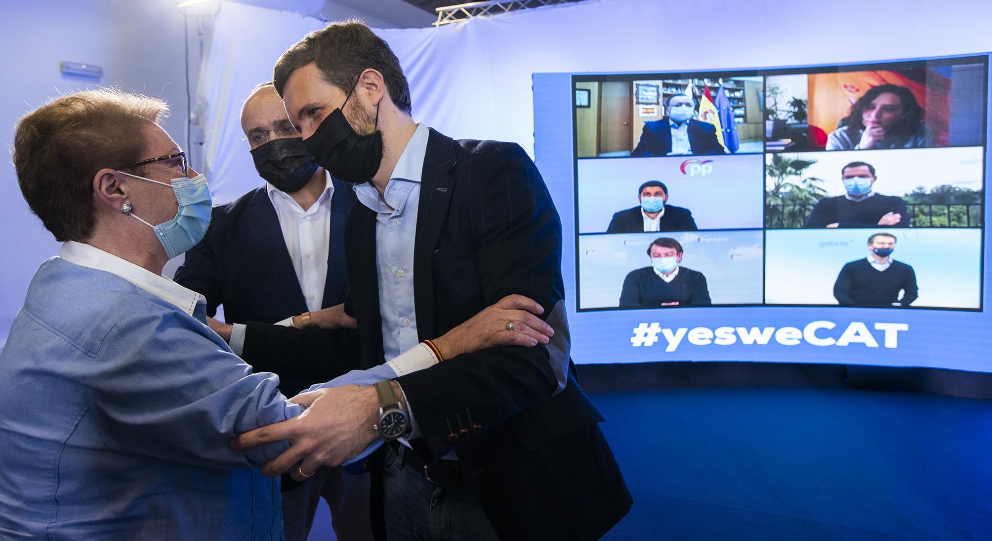 El presidente del Partido Popular, Pablo Casado, durante el acto celebrado en Hospitalet de Llobregat, junto a Alejandro Fernández