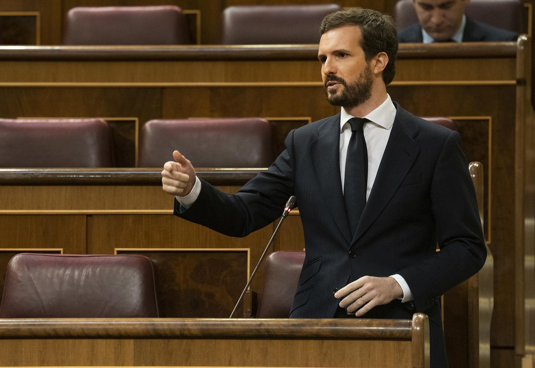 El presidente del Partido Popular, Pablo Casado, en la Sesión de Control al Gobierno