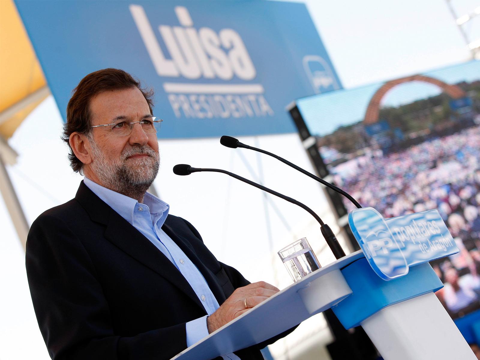 El presidente del PP, Mariano Rajoy, durante su intervención en el Acto de presentación de Luisa Fernanda Rudi como candidata del PP a la Presidencia de Aragón.