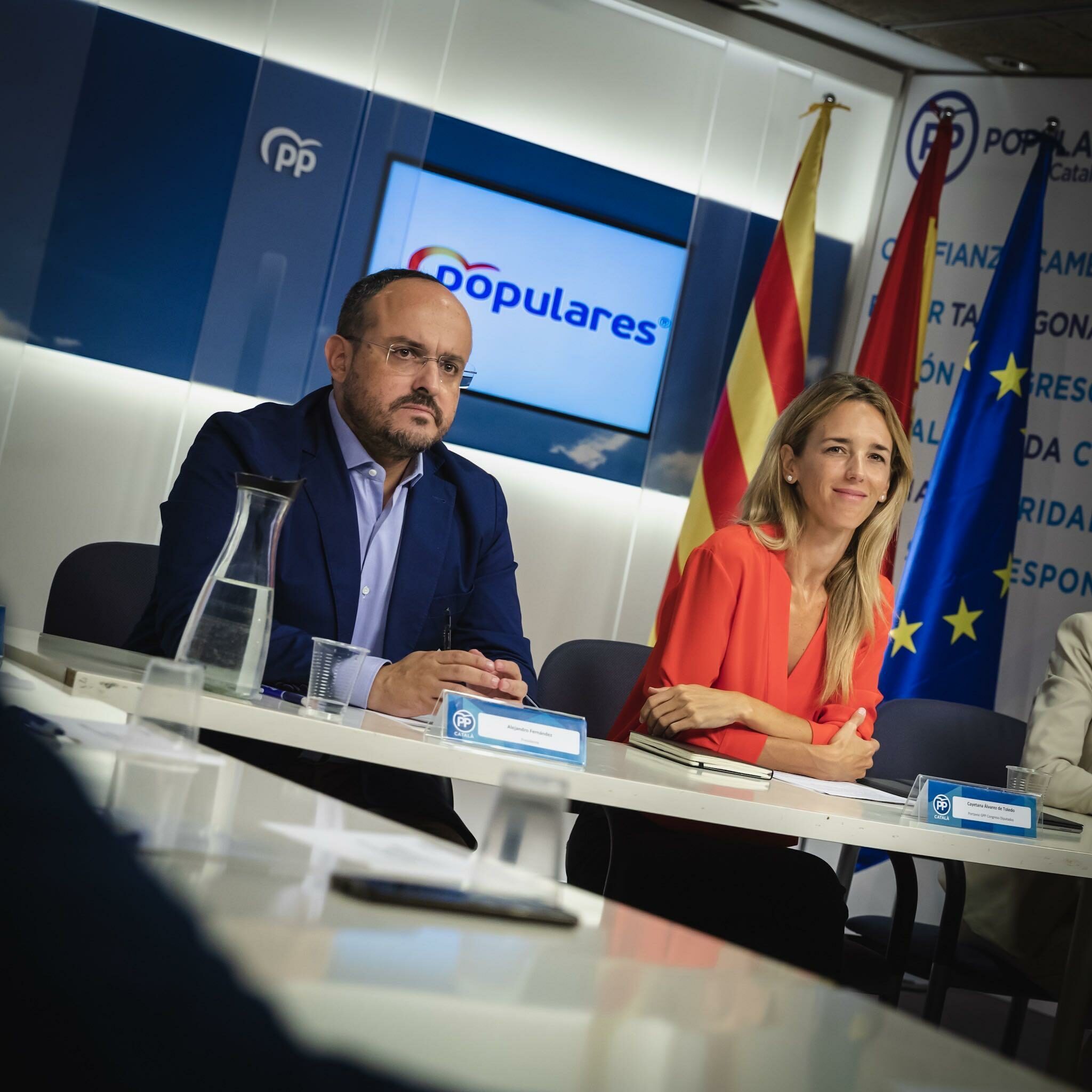 Reunión de la portavoz del GPP, Cayetana Álvarez de Toledo, y el presidente del PP de Cataluña, Alejandro Fernández, con asociaciones de la Guardia Civil y representantes de sindicatos de la Policía Nacional, de los Mossos y de la Guardia Urbana.