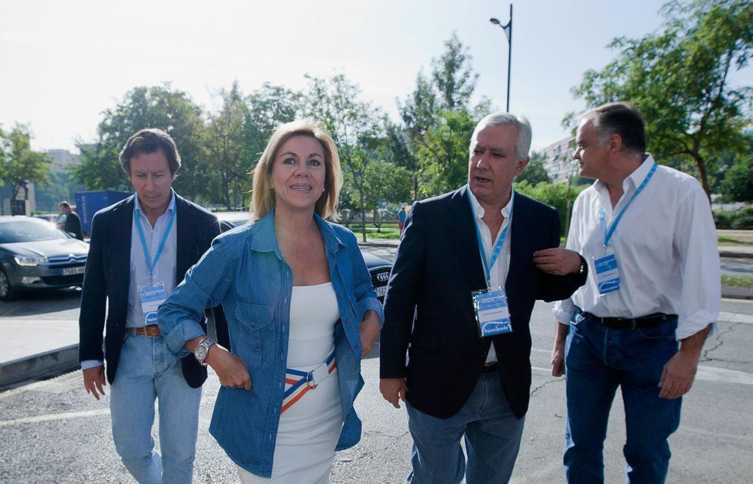 La Secretaria General, Mª Dolores Cospedal, junto a los Vicesecretarios Generales a su llegada a la Intermunicipal