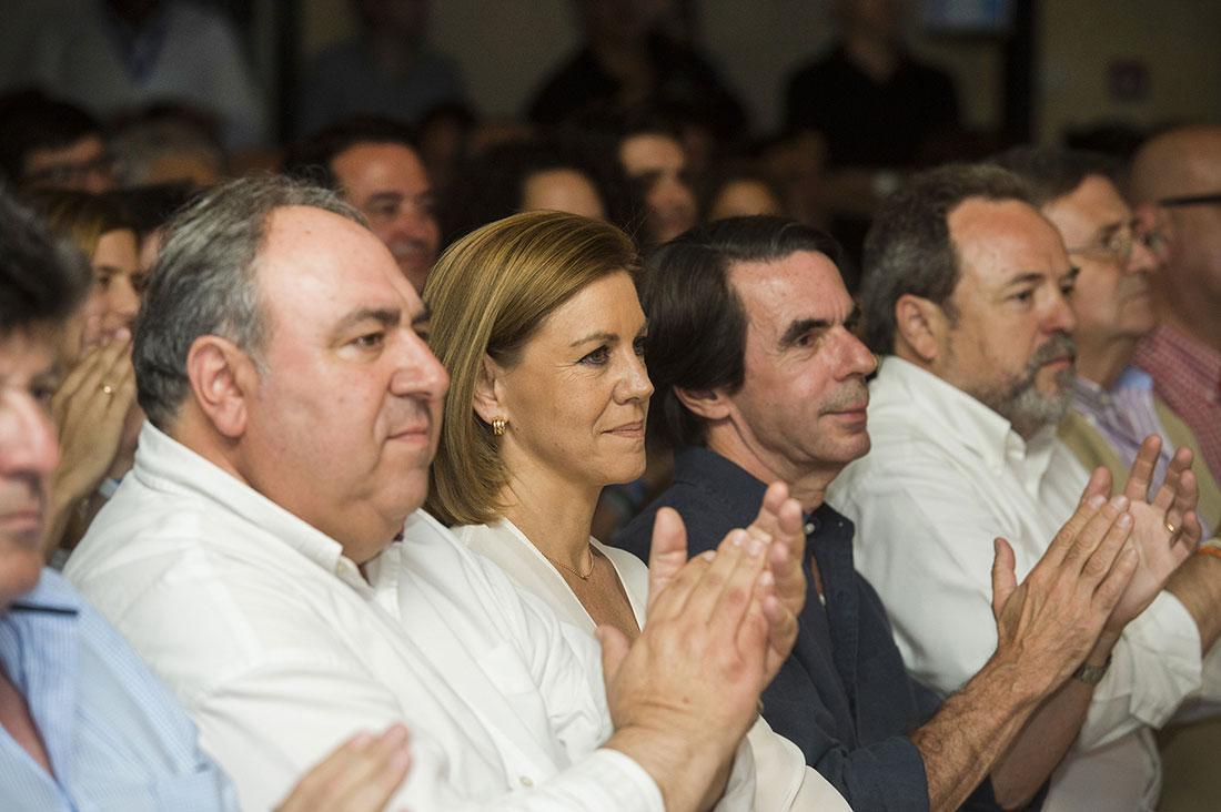 La Secretaria General del PP, Mª Dolores de Cospedal junto a Vicente Tirado y José María Aznar