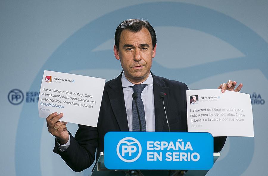 El vicesecretario de Organización y Electoral del Partido Popular, Fernando Martínez-Maillo, ha afirmado hoy que el discurso de ayer de Arnaldo Otegi en un medio de comunicación, fue “vomitivo y miserable. Entraña una gran hipocresía y representa a la parte más miserable del ser humano”, ha afirmado antes de denunciar que sigue sin condenar los atentados, sin solidarizarse ni pedir disculpas a las víctimas, “incluso les insulta y falta al respeto”. Así, ha explicado que el dirigente abertzale intenta crear un nuevo relato de lo que ha pasado en España y en el País Vasco y le ha recordado que no ha habido una guerra entre dos bandos, sino que ha habido unos que han asesinado, secuestrado y extorsionado y que hay “vencedores y vencidos”. “No son muertes, son asesinatos”, le ha contestado antes de afirmar que “frente al relato de la mentira, está el relato de la verdad”.