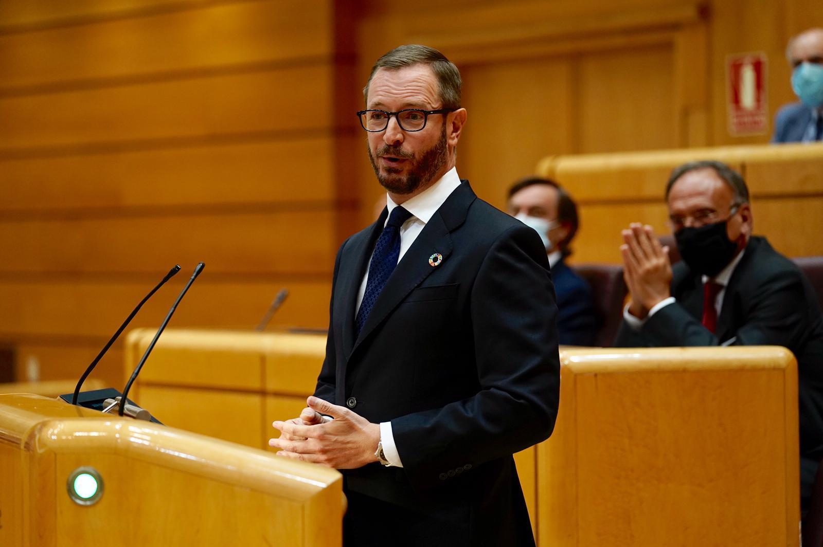 El portavoz del Grupo Popular en el Senado, Javier Maroto, ha exigido al presidente del Gobierno, Pedro Sánchez, que “deje a cero el IVA de las mascarillas, como ha hecho Italia, para que los ciudadanos podamos colocarnos un elemento de protección en la boca y no un bozal recaudatorio”.