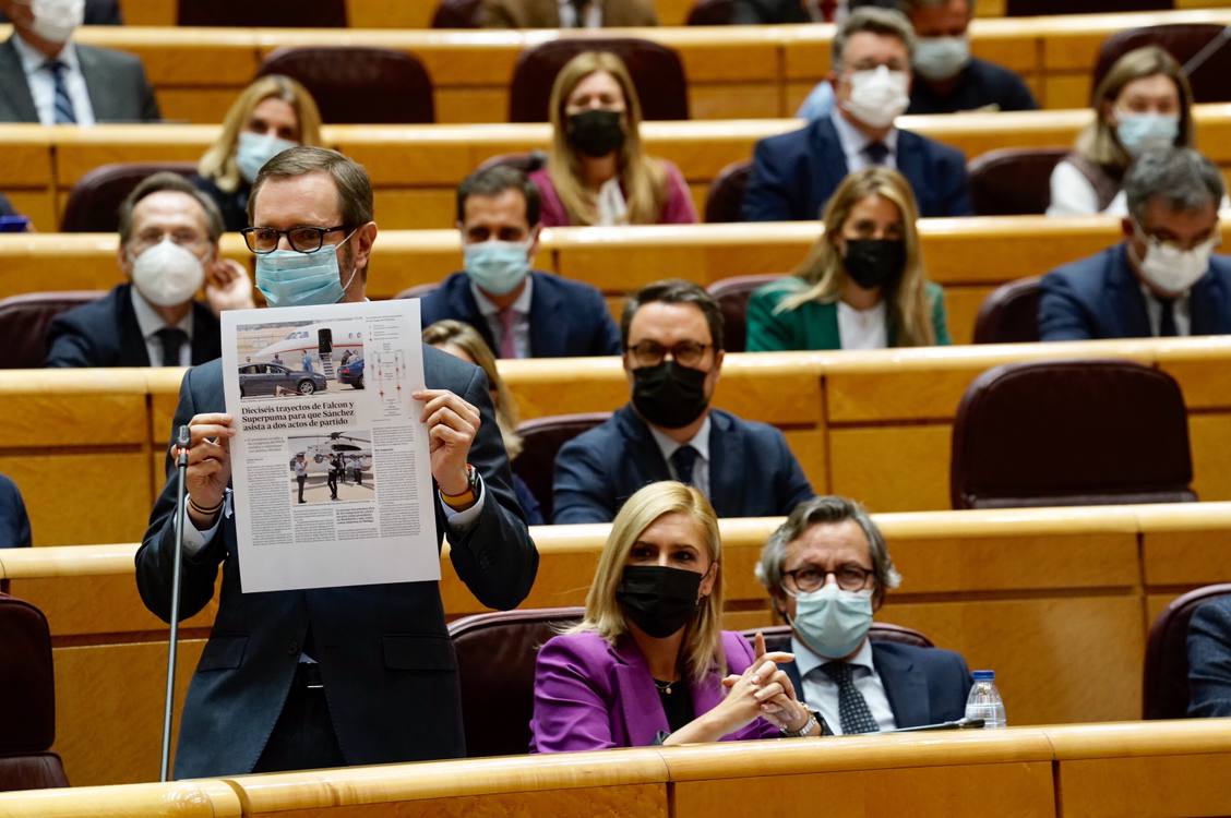 Maroto ha iniciado su intervención mostrando al hemiciclo la página del periódico ABC, que publica hoy una información sobre los viajes en Falcon y en Super Puma del presidente del Gobierno, para asistir a los congresos del PSOE en Valencia y Andalucía. “¿Es esto cierto?”, ha preguntado Javier Maroto. “Si es cierto esto, es una vergüenza. Es una vergüenza tener un presidente que se paga ir en Falcon gratis a los mítines del PSOE, con el dinero de todos los españoles”.