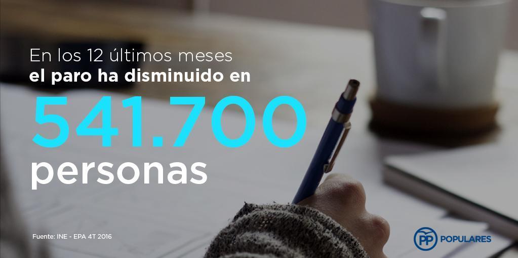 #EPA 4T2016 En los 12 últimos meses el paro ha disminuido en 541.700 personas (variación -11,33%) #INE pic.twitter.com/cQovPCxLcJ