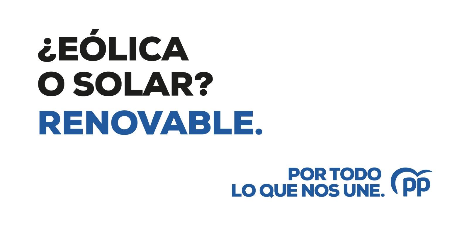 A través de la dicotomía eólica/solar, el PP apela a un elemento de unión, en la línea del eslogan de la precampaña “Por todo lo que nos une”. Enlace de descarga: https://we.tl/t-nuUWlxmkoF