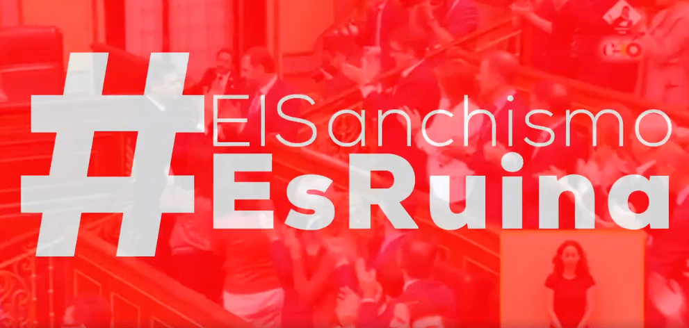 El vídeo, de 47 segundos de duración, arranca con imágenes de los aplausos que diputados socialistas y de Podemos dedican a Pedro Sánchez tras ganar la moción de censura con los apoyos de los independentistas y Bildu. “Aquí empezó todo, aquí empezó la ruina”, se lee sobreimpreso en esas imágenes.