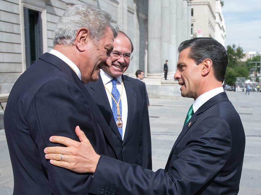 Ambos presidentes han accedido al Salón de Pasos Perdidos, donde le han presentado a Peña Nieto a los miembros de las Mesas y le han impuesto las medallas del Congreso y el Senado.