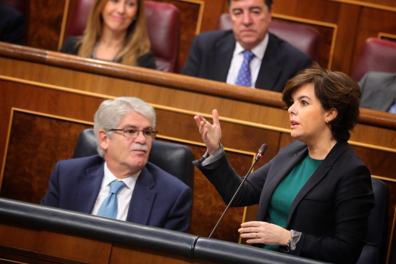 Asimismo y tras leer una frase textual hecha por el partido de Esquerra Republicana, Soraya Sáenz de Santamaría advierte que “lo que debe triunfar es la ley y la convivencia, que es el fruto de la ley”. Por esto mismo, pide a Tardá respeto por las instituciones catalanas, “nombren presidente a una persona que pueda serlo, cumplan con el resto de los grupos parlamentarios y devuelvan a Cataluña esa convivencia que desde antes de Maura residía en Cataluña”.