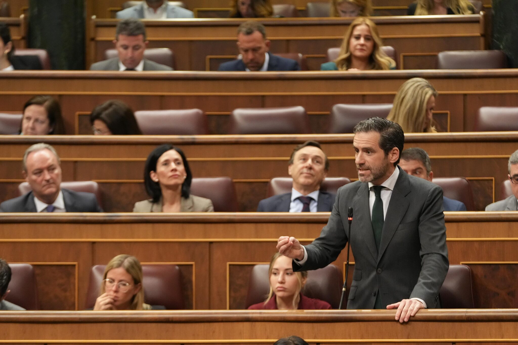 lanza, señalando al grupo parlamentario de Sumar y a los diputados de