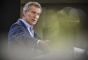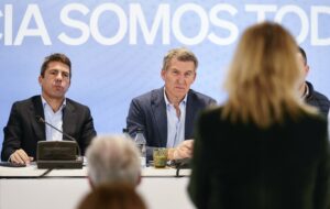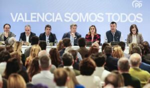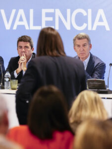 Feijóo durante una reunión con alcaldes y cargos del PP de Valencia